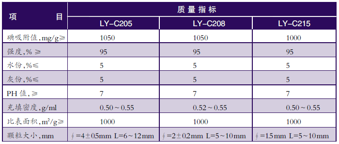 本系列活性炭选用优质煤为原料,采用先进工艺条件和严格的检测手段经斯列普炉活化而成。其特点为孔隙结构发达、比表面积大,强度高、吸附能力强,吸附速度快,使用寿命长等显著特点,可广泛应用于工业用纯净水、饮用纯净水、自来水等的制取处理等。